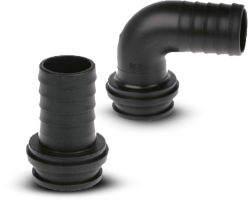 Conexões e acopladores rápidos de polipropileno reforçado com fibra de vidro. Alavancadas de bloqueio e fichas de aço inoxidável. Guarnições em EPDM ou Viton. Roscas BSP/NPT.